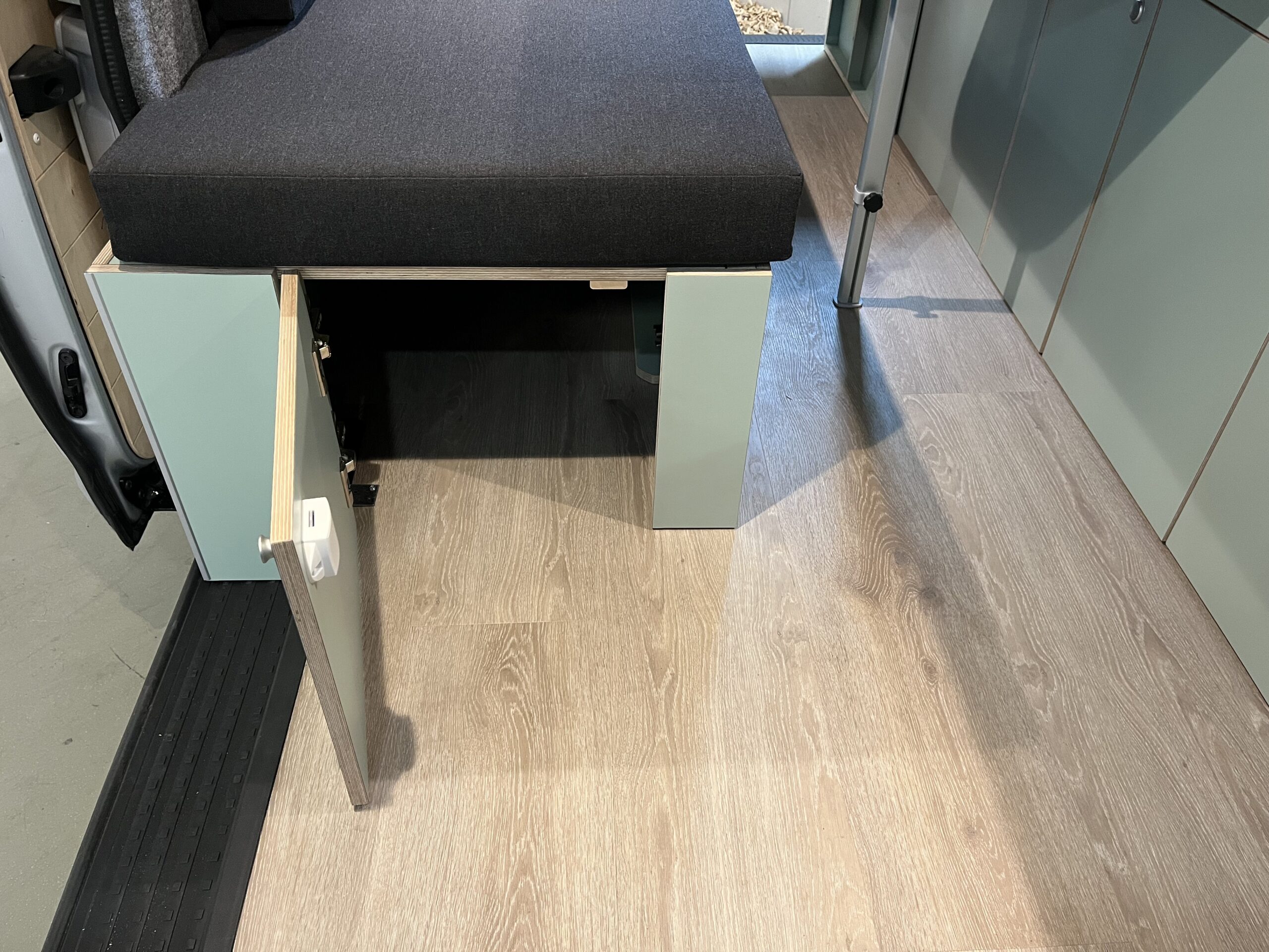 Veel opbergruimte onder de bank